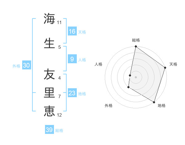 海生 友里恵さんを姓名の画数から五運を鑑定
