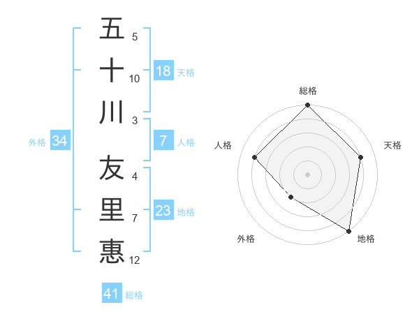 五十川 友里惠さんの総格は41画の5点!
