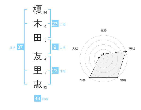榎木田 友里惠さんを姓名の画数から五運を鑑定