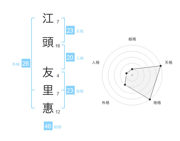 江頭 友里惠さんを姓名の画数から五運を鑑定