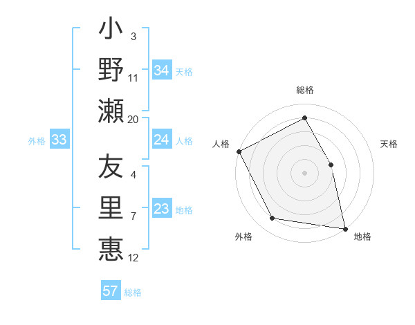 小野瀬 友里惠さんを姓名の画数から五運を鑑定