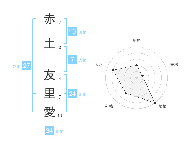 赤土 友里愛さんを姓名の画数から五運を鑑定