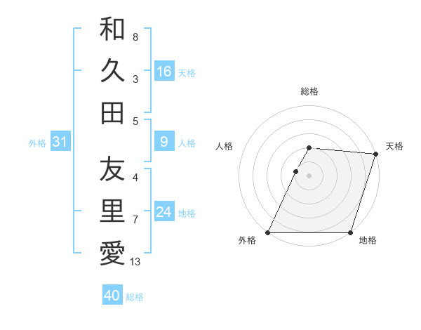 和久田 友里愛さんを姓名の画数から五運を鑑定