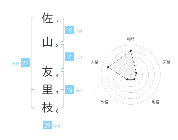 佐山 友里枝さんを姓名の画数から五運を鑑定