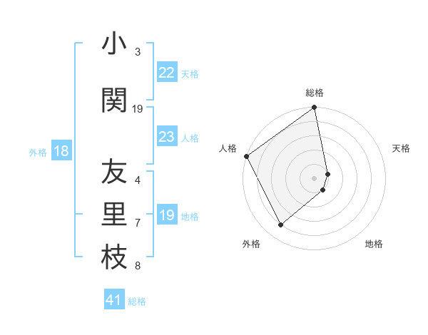 小関 友里枝さんを姓名の画数から五運を鑑定