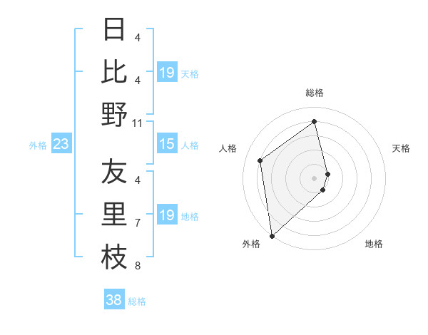 日比野 友里枝さんを姓名の画数から五運を鑑定