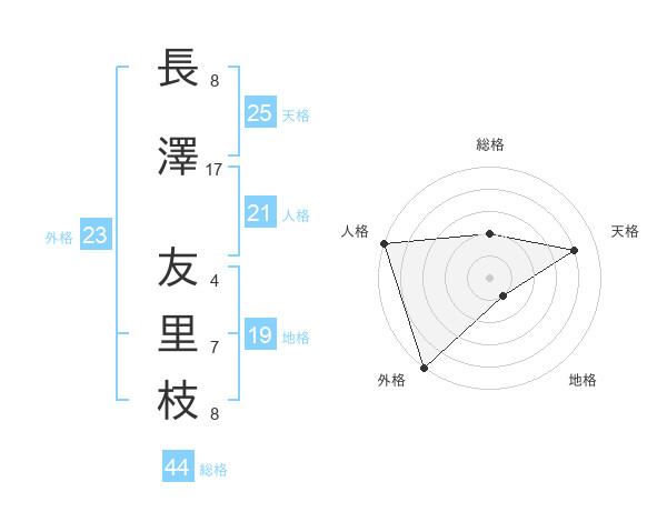 長澤 友里枝さんを姓名の画数から五運を鑑定