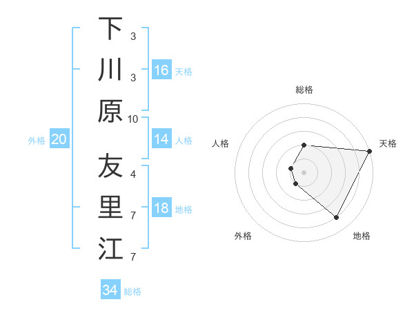 下川原 友里江さんを姓名の画数から五運を鑑定