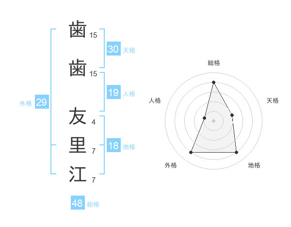 歯歯 友里江さんを姓名の画数から五運を鑑定