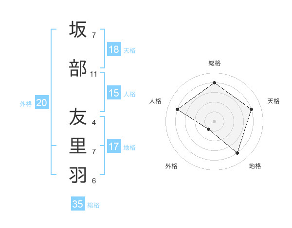 坂部 友里羽さんの総格は35画の4点!