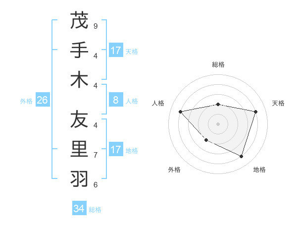 茂手木 友里羽さんを姓名の画数から五運を鑑定