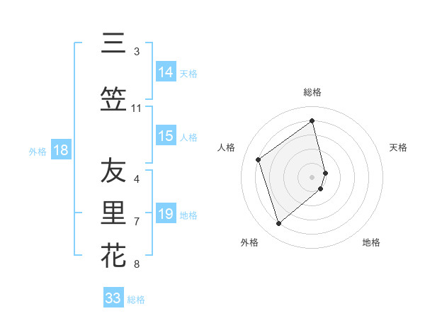 三笠 友里花さんを姓名の画数から五運を鑑定