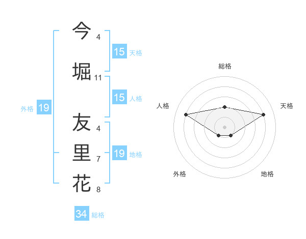 今堀 友里花さんの天格は15画の4点!
