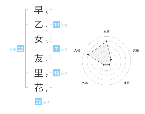 早乙女 友里花さんの総格は29画の4点!
