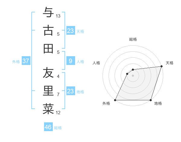 与古田 友里菜さんを姓名の画数から五運を鑑定