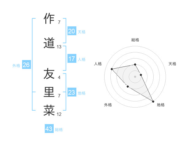 作道 友里菜さんを姓名の画数から五運を鑑定