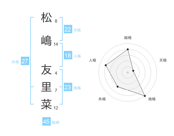 松嶋 友里菜さんを姓名の画数から五運を鑑定