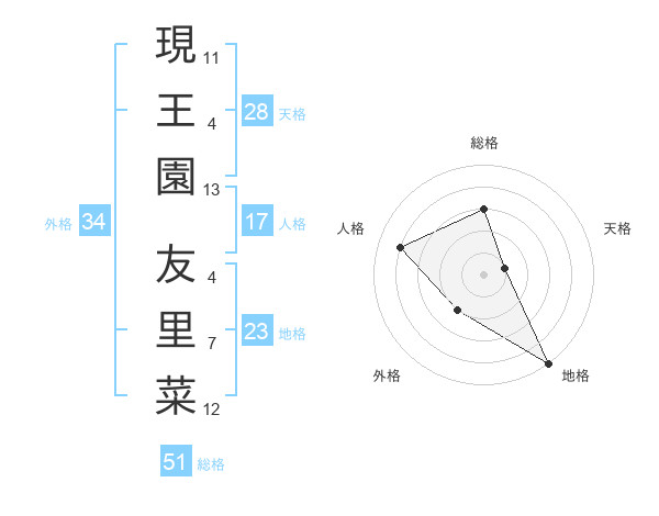 現王園 友里菜さんを姓名の画数から五運を鑑定