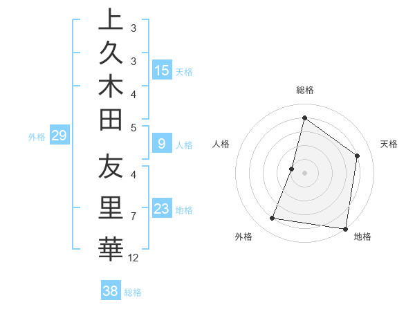 上久木田 友里華さんを姓名の画数から五運を鑑定