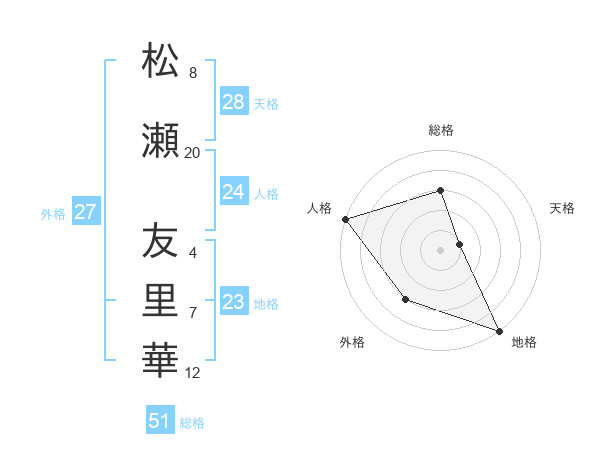 松瀬 友里華さんの総格は51画の3点!