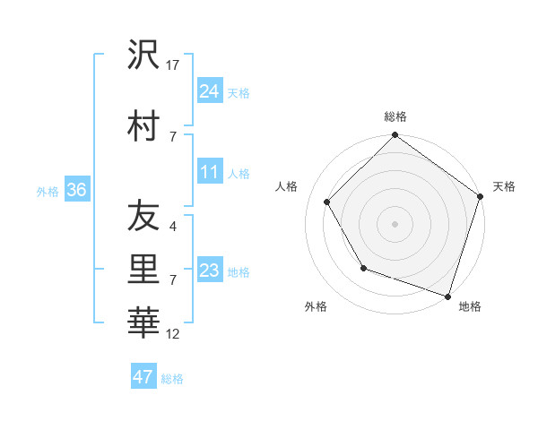 沢村 友里華さんを姓名の画数から五運を鑑定