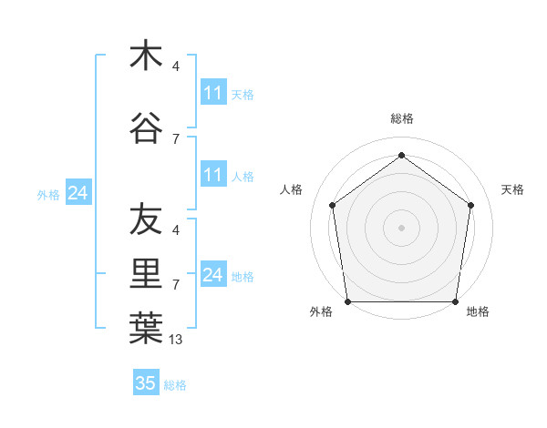 木谷 友里葉さんの天格は11画の4点!