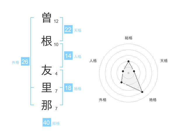 曽根 友里那さんを姓名の画数から五運を鑑定