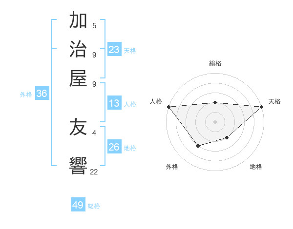 加治屋 友響さんを姓名の画数から五運を鑑定