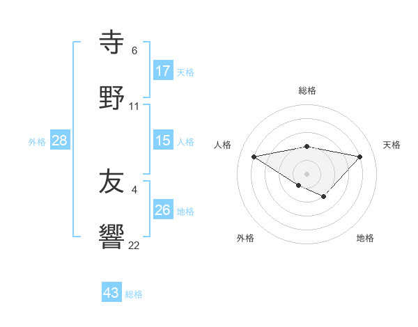 寺野 友響さんの天格は17画の4点!