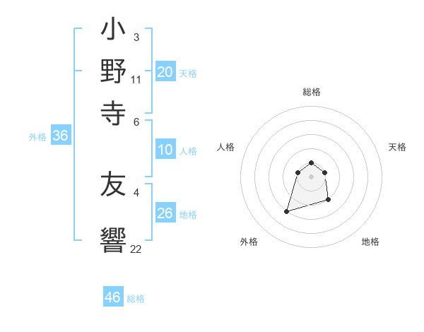小野寺 友響さんを姓名の画数から五運を鑑定