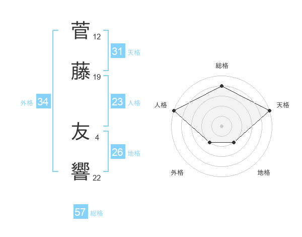 菅藤 友響さんの天格は31画の5点!