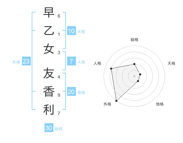 早乙女 友香利さんを姓名の画数から五運を鑑定