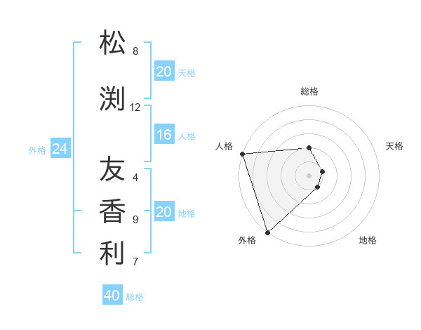 松渕 友香利さんを姓名の画数から五運を鑑定