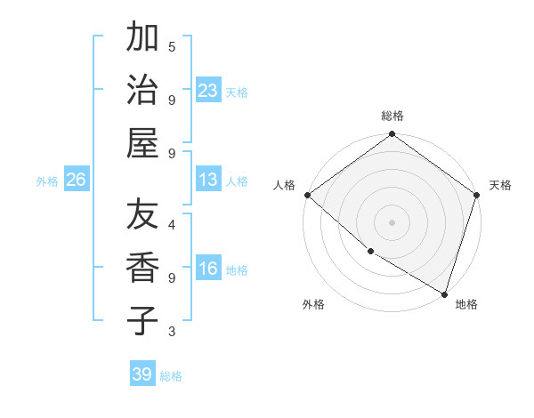 加治屋 友香子さんの天格は23画の5点!