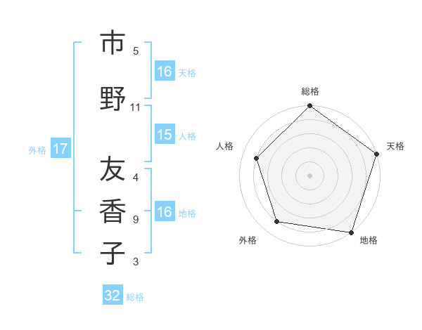 市野 友香子さんの天格は16画の5点