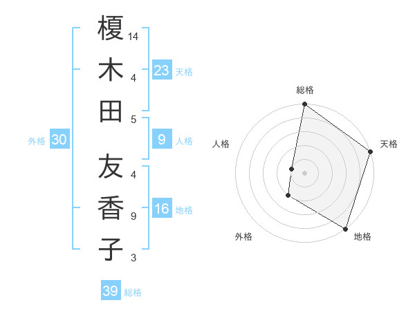 榎木田 友香子さんの天格は23画の5点!