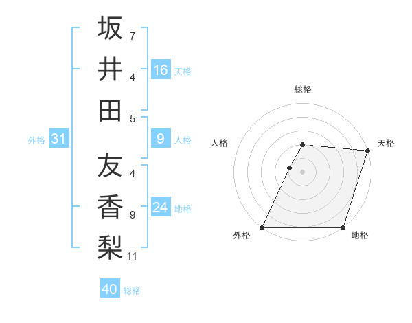 坂井田 友香梨さんを姓名の画数から五運を鑑定