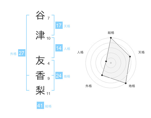谷津 友香梨さんを姓名の画数から五運を鑑定