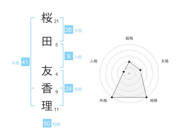 桜田 友香理さんの総格は50画の2点!