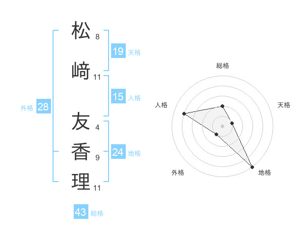 松﨑 友香理さんを姓名の画数から五運を鑑定