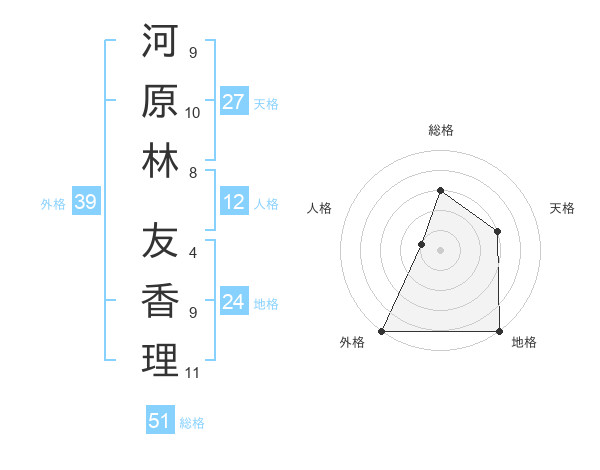 河原林 友香理さんを姓名の画数から五運を鑑定
