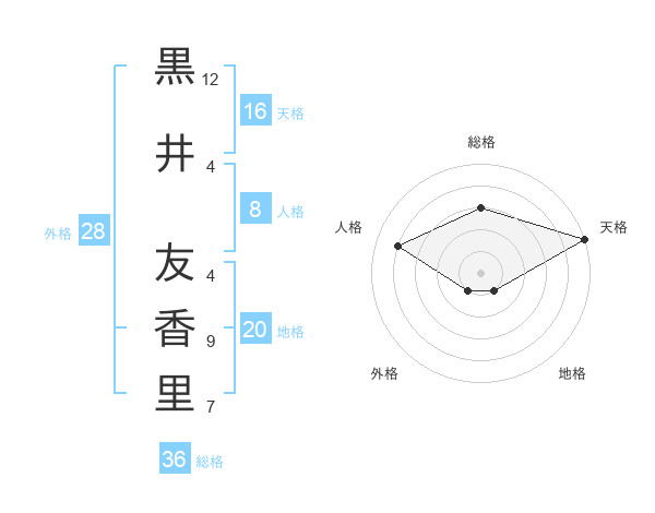 黒井 友香里さんの地格は20画の1点!