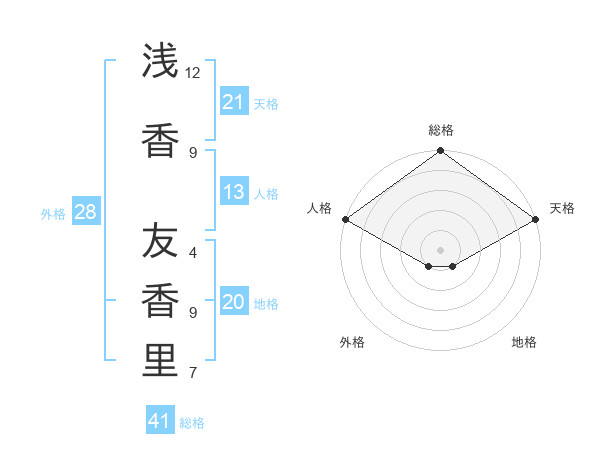 浅香 友香里さんを姓名の画数から五運を鑑定