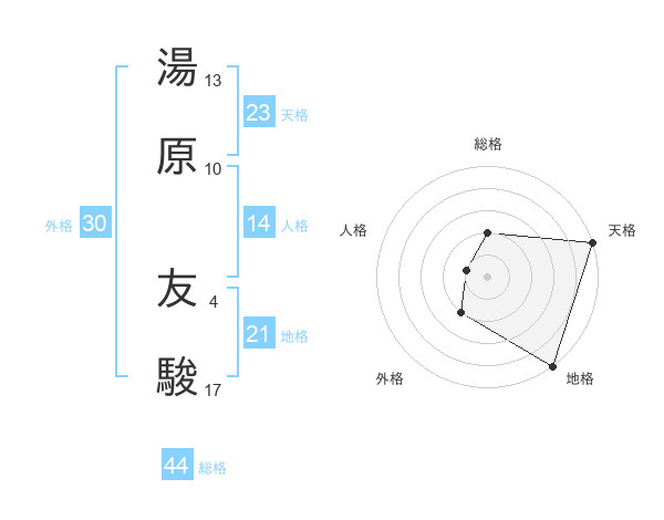 湯原 友駿さんの天格は23画の5点!
