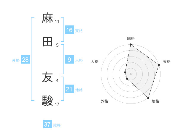 麻田 友駿さんを姓名の画数から五運を鑑定