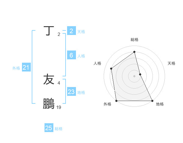 丁 友鵬さんの総格は25画の4点!