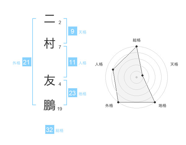 二村 友鵬さんを姓名の画数から五運を鑑定