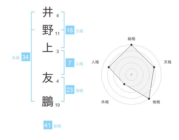 井野上 友鵬さんの総格は41画の5点!