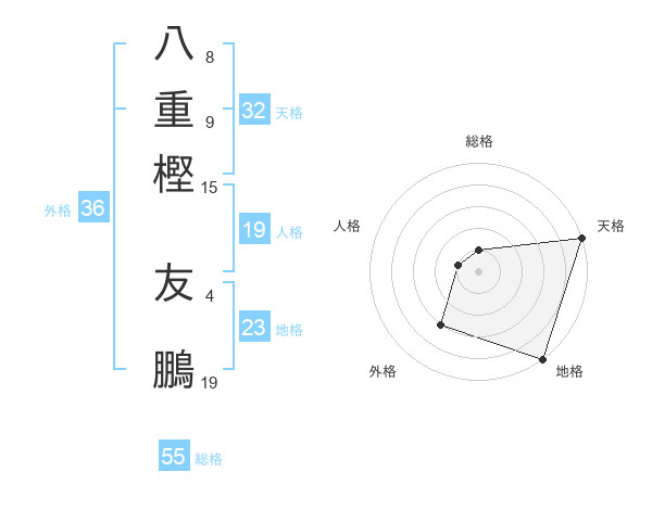 八重樫 友鵬さんを姓名の画数から五運を鑑定