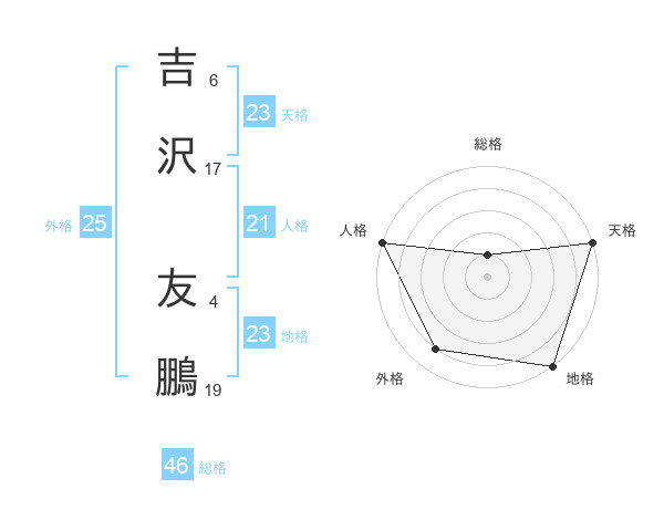 吉沢 友鵬さんの天格は23画の5点!
